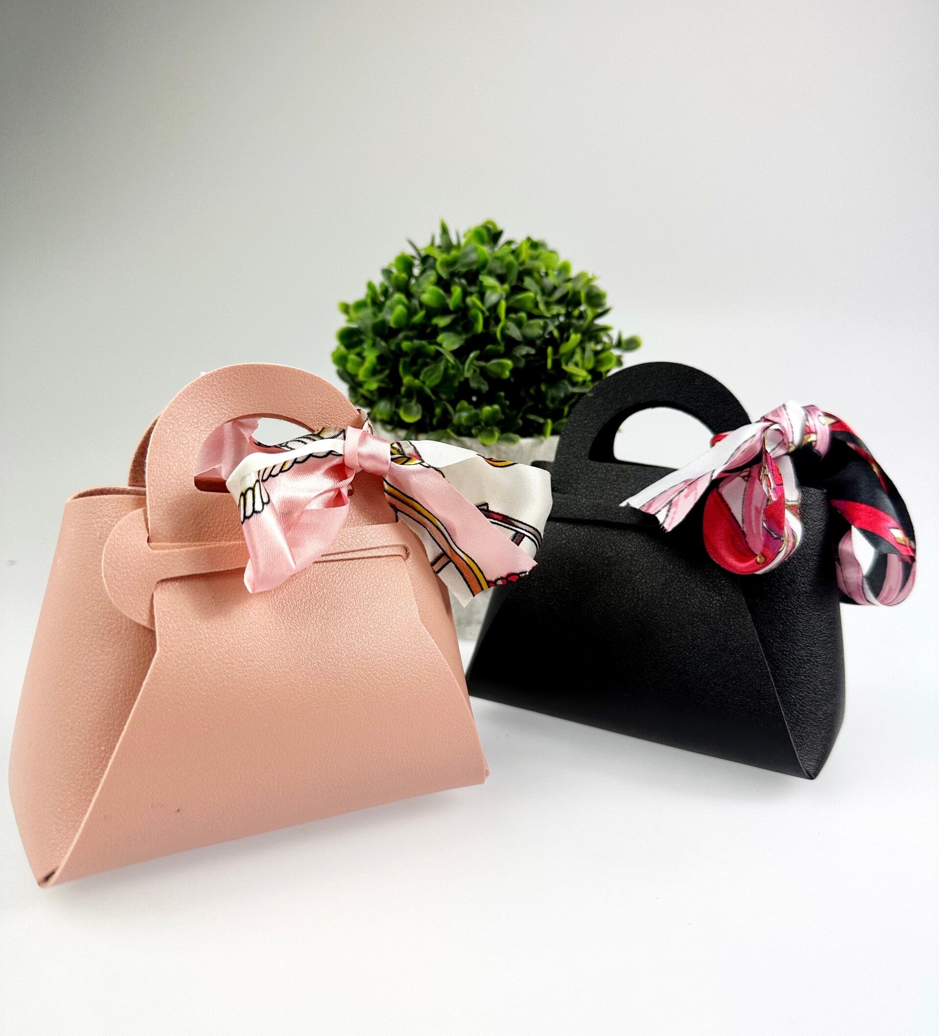 Het tasje is gemaakt van imitatieleer en heeft een strik om hem helemaal af te maken.