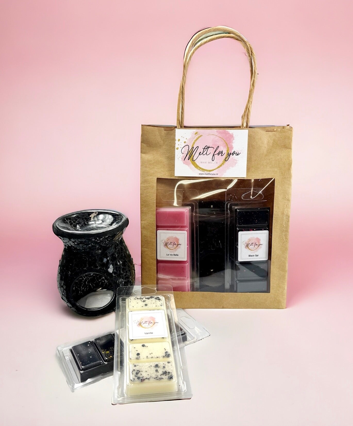Je kunt kiezen uit 2 kleuren branders en 15 geuren wax melt snapbars.