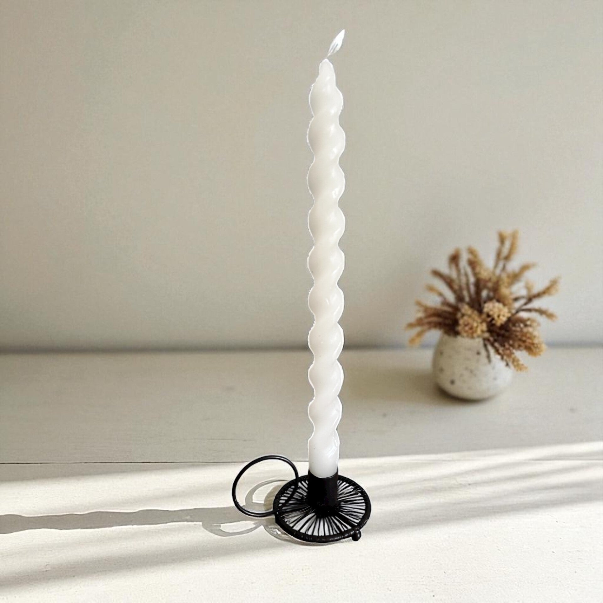 Deze stijlvolle set bestaat uit één kaars (30 cm lang) met een bijpassende kandelaar. De kaars is verkrijgbaar in de kleuren wit, zwart of roze – zo kies je precies wat past bij jouw interieur.